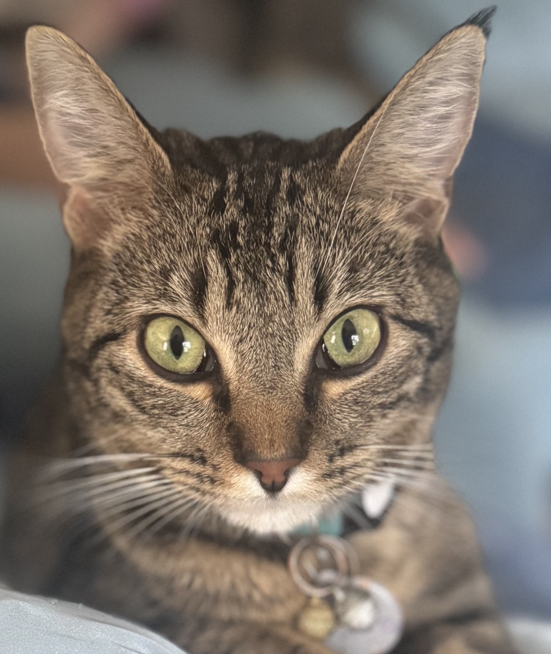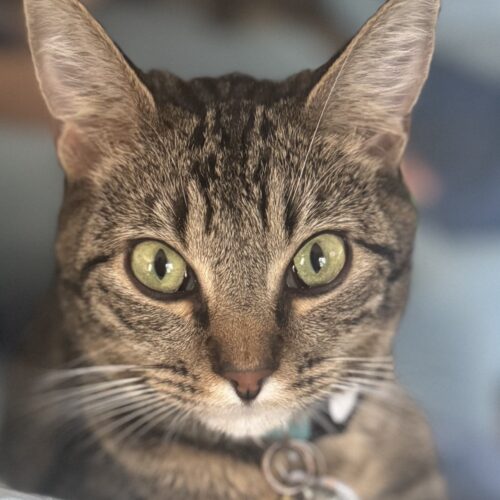 Mr. Pig is a fun and energetic guy who loves to play and cuddle up next to his favorite people. He is kid, cat, and dogs-of-all-sizes friendly. He’s can sometimes be very zoomy and climbs his cat tree like a monkey.  A preciously loving guy with a gigantic personality!