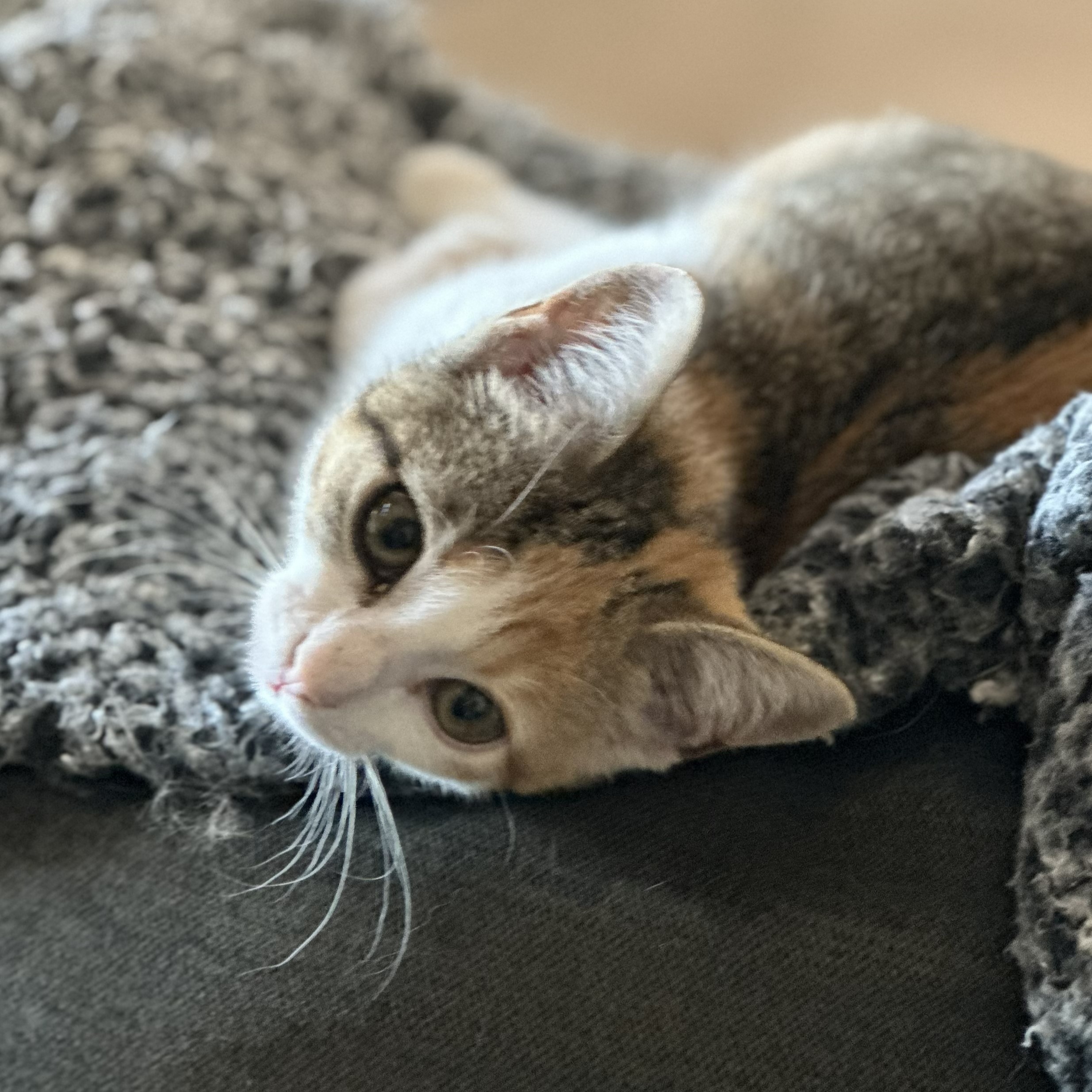 Dove is gentle and reserved but does get her periods of crazy kitten. She is so sweet and affectionate and really enjoys her cuddle time.